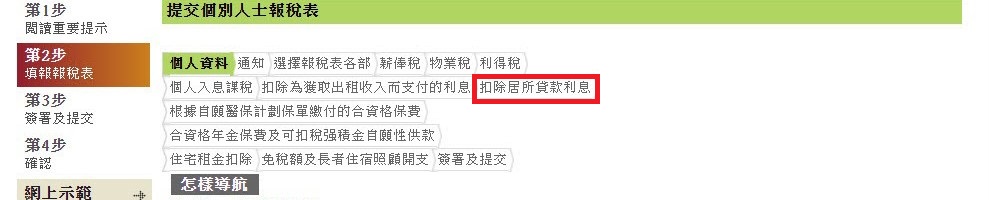 網上報稅申請「供樓扣稅」的步驟如下3