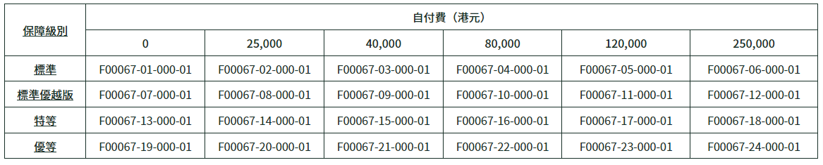 自願醫保計劃認可產品編號: