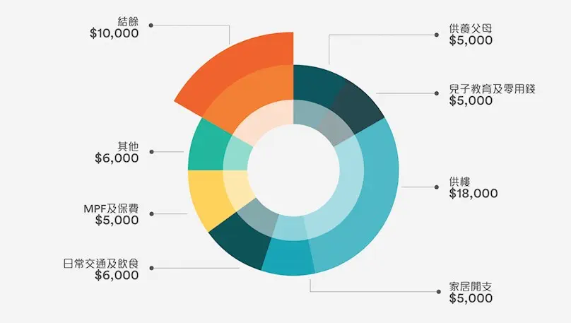 舉個例子,家庭月入6萬元的陳先生,既要供養年老退休的父母,又要「出糧」給兒子作零用錢,加上供樓及家居開支,基本上已經佔了工資的一大半。其他花費方面,強積金、保費、日常交通及飲食,可能又用了四分一,加上有時去旅行、買幾件衣服後,幾乎無得剩。如何好好善用每個月剩下的一萬元 ,就成為陳先生的一大考驗。